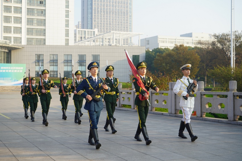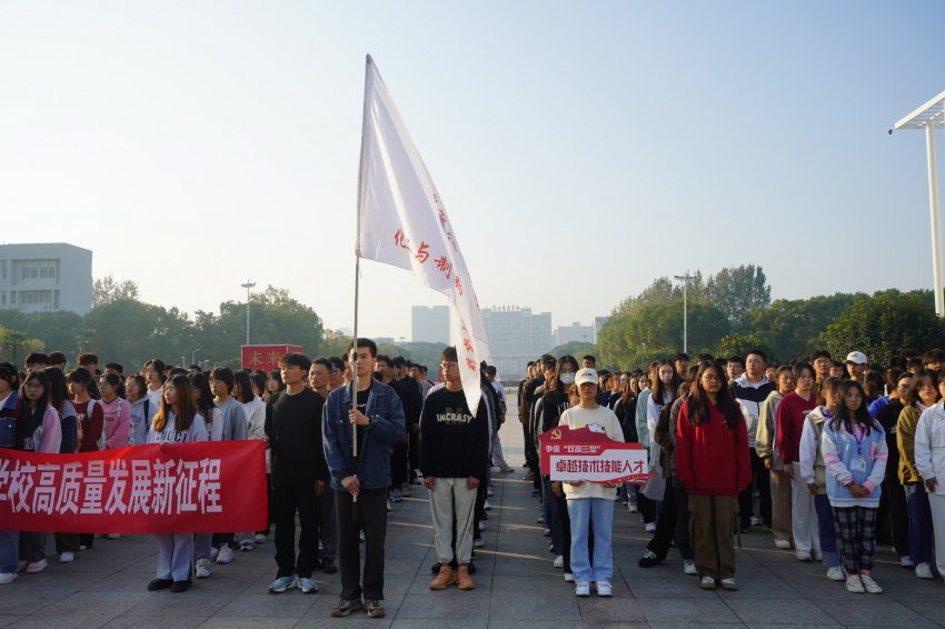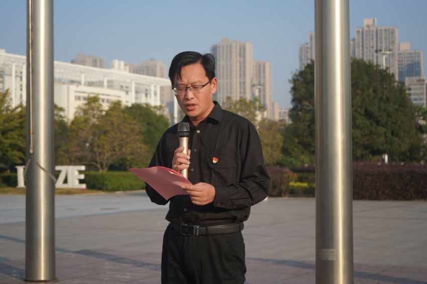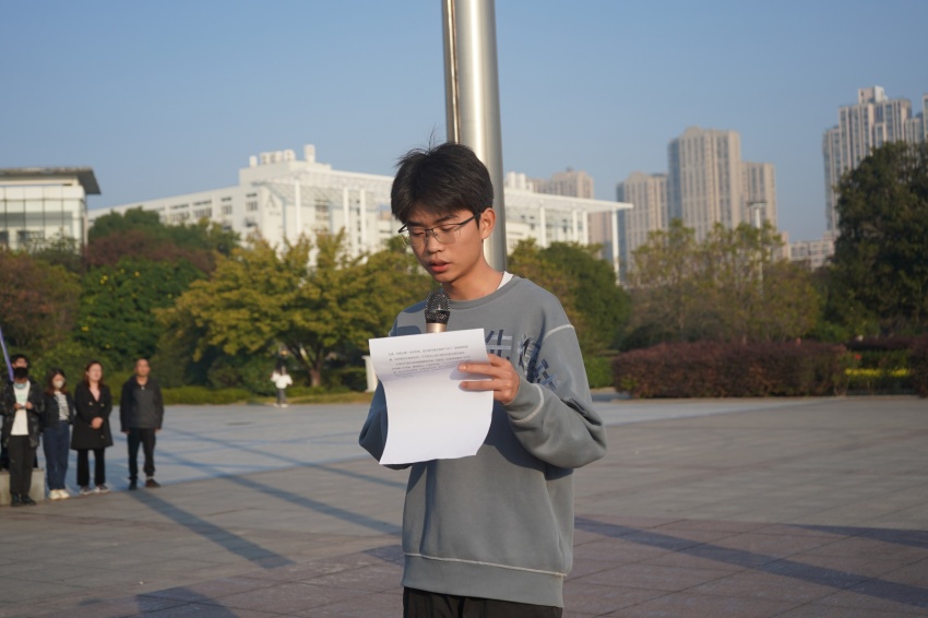 随后,化学工程(本科)2211班赵辉同学代表全体在校生作国旗下发言。他结合自己一年的学习生活,号召全体同学心怀梦想,脚踏实地,以学校“励志·践行”校训为指引,担负时代责任,做一名新时代合格的大学生。