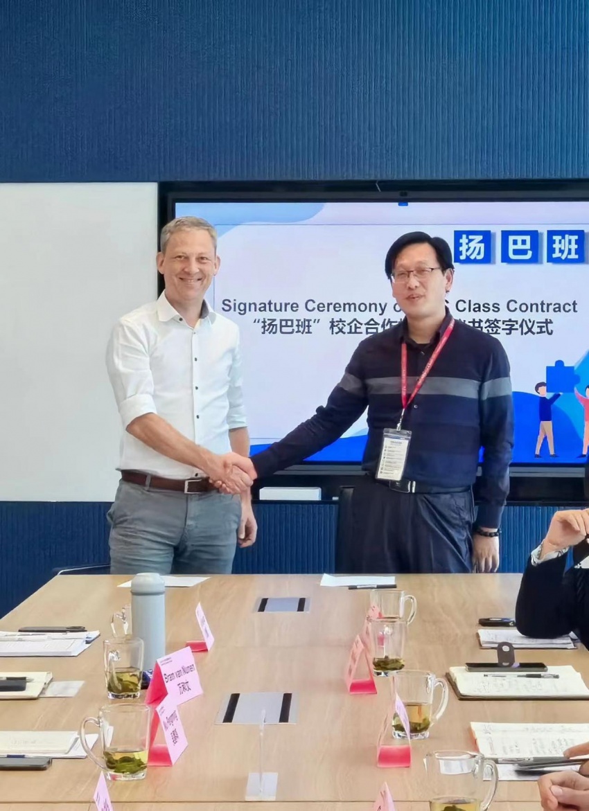 开放日期间,我校师生受到扬巴公司副总裁吴鹏鸣先生、人力资源部门总监万和文先生、人力资源部门经理朱虹女士等盛情接待,双方就继续深度校企合作、前两届“扬巴班”问卷调查结果、校企合作生产实践项目等进行了深入交流。周勇与吴鹏鸣共同签署了新一轮《校企战略合作框架协议》,杨小林和万和文共同签署新一届扬巴班《补充协议》。