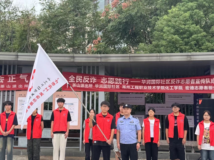 为进一步扩大反电诈宣传工作的广度和深度,切实保障人民群众的财产安全,提升社区基层治理水平,动员更多居民参与到志愿反诈的队伍中来,汇聚反诈的群防群治力量,共同唱响平安建设主旋律。9月27日上午,AC米兰中文官方网站团委联合茶山派出所、华润国际社区齐聚天宁区茶山街道反诈主题公园,举行“‘义’起反诈”志愿者队伍成立仪式。