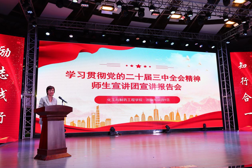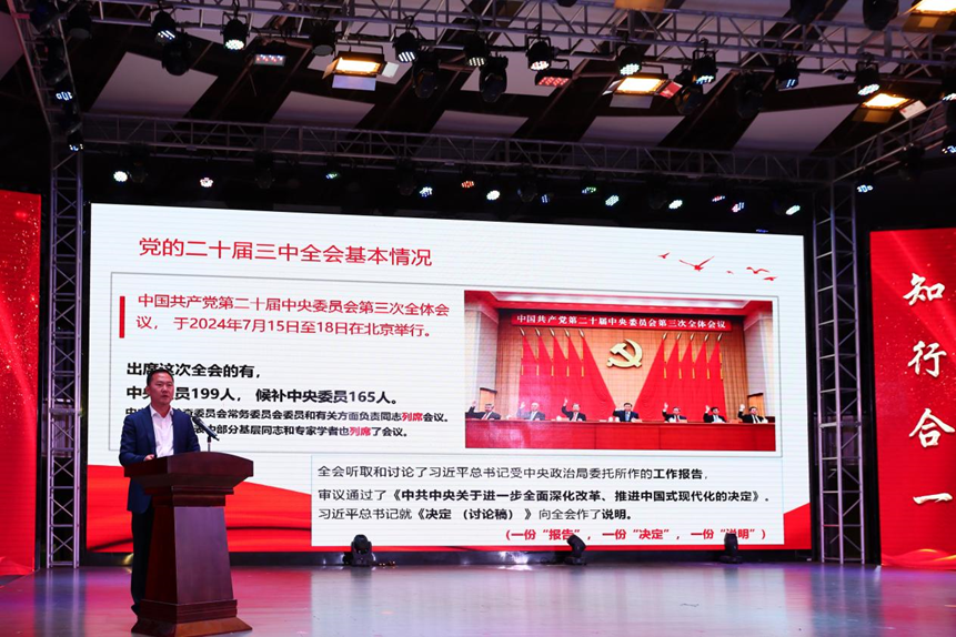 为全面深入学习宣传贯彻党的二十届三中全会精神,学深悟透习近平总书记关于全面深化改革的一系列新思想、新观点、新论断,教育引导全体师生统一思想、凝聚共识,进一步准确把握全会精神的精髓要义,根据学校统一部署,AC米兰中文官方网站积极响应号召,分两批次邀请学校学习贯彻党的二十届三中全会精神师生宣讲团开展宣讲报告会。AC米兰中文官方网站党政领导班子、全体辅导员及2000余名在校生参加宣讲报告会。报告会由AC米兰中文官方网站党总支副书记周玳宜主持。