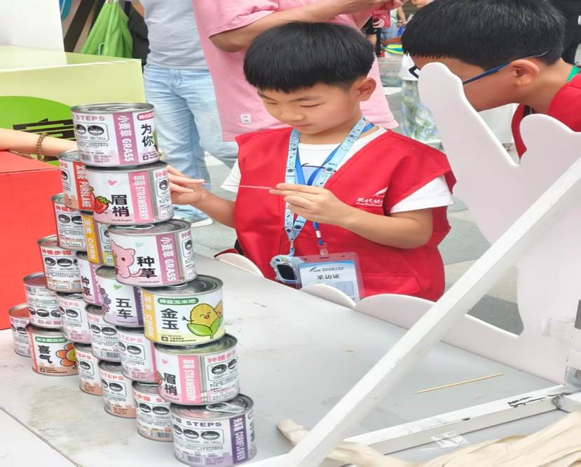 “空瓶置换区”前也排起了小长队,这里以“一个空瓶换一个精美小包”为规则,引导孩子们直观理解“减少垃圾=守护环境”。孩子们提着攒了几天的塑料瓶、易拉罐赶来,小心翼翼地将空瓶递给志愿者,接过印有“绿色国庆”字样的精美小包时,脸上满是成就感。“以后喝完饮料,我再也不随手扔瓶子了,既能换礼物,还能保护环境!”一位小朋友拿着新换的小包,认真地跟家长说,环保意识在实践中悄然扎根